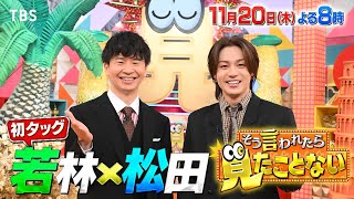 『そう言われたら見たことない』11/20(木) よる8時 オードリー若林正恭とTravis Japan松田元太がMC初タッグ!さらに松田はバラエティ番組初MC! 日常で目にする様々な光景の「言われてみたら見たことない」貴重な裏側映像を大放出! 審査員長・松田が映像の衝撃度を審査する!