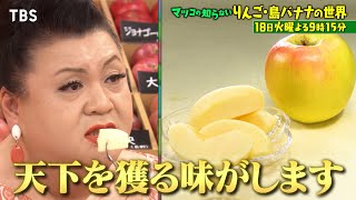 『マツコの知らない世界』11/18(火) よる9時15分 今が旬のフルーツSP! 全国のりんご大集結! 謎多き島バナナとは? 今が旬フルーツSP【りんご&島バナナ】全国2000以上!?取寄せ可最新品種 ▼美しすぎる断面でSNS話題・韓国進出したりんご新品種 長野発!食べる箇所で味が違う!?衝撃りんご あなたの好みが分かる!りんご甘味&酸味チャート表 交配方法&品種開発に驚き新事実 ▼日本で独自栽培【島バナナ】品種もルーツも不明…お天気キャスター森田さんがその謎の魅力を猛プレゼン&新定番スイーツも!
