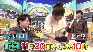 『櫻井・有吉THE夜会』 11月20日(木) よる10時 2025年も残り1か月! これをやらないと今年終われない人たちが集結! ▼河合郁人 とSnow Man深澤辰哉 が今年やり残したこととは? 最後には深澤から河合へサプライズプレゼントも