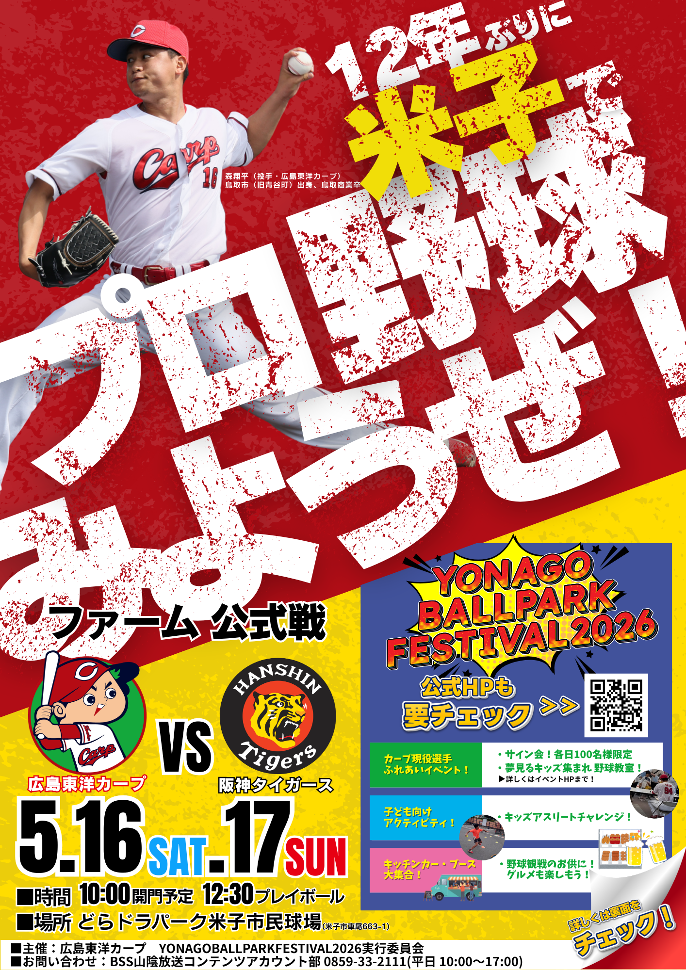 12年ぶりに米子で開催!プロ野球ファーム公式戦 「広島東洋カープ vs 阪神タイガース」 2026年5月16日(土)~2026年5月17日(日) 12年ぶりに米子で開催!プロ野球ファーム公式戦 「広島東洋カープ vs 阪神タイガース」