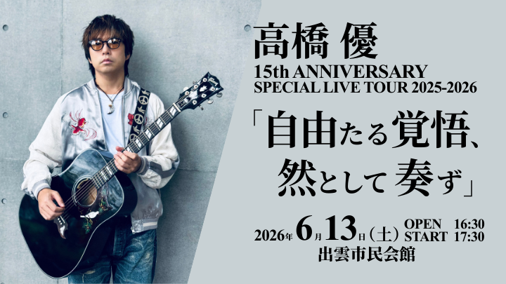 高橋 優 15th ANNIVERSARYSPECIAL LIVE TOUR 2025-2026 「自由たる覚悟、然として奏ず」 2026年6月13日(土) 高橋 優 15th ANNIVERSARYSPECIAL LIVE TOUR 2025-2026 「自由たる覚悟、然として奏ず」
