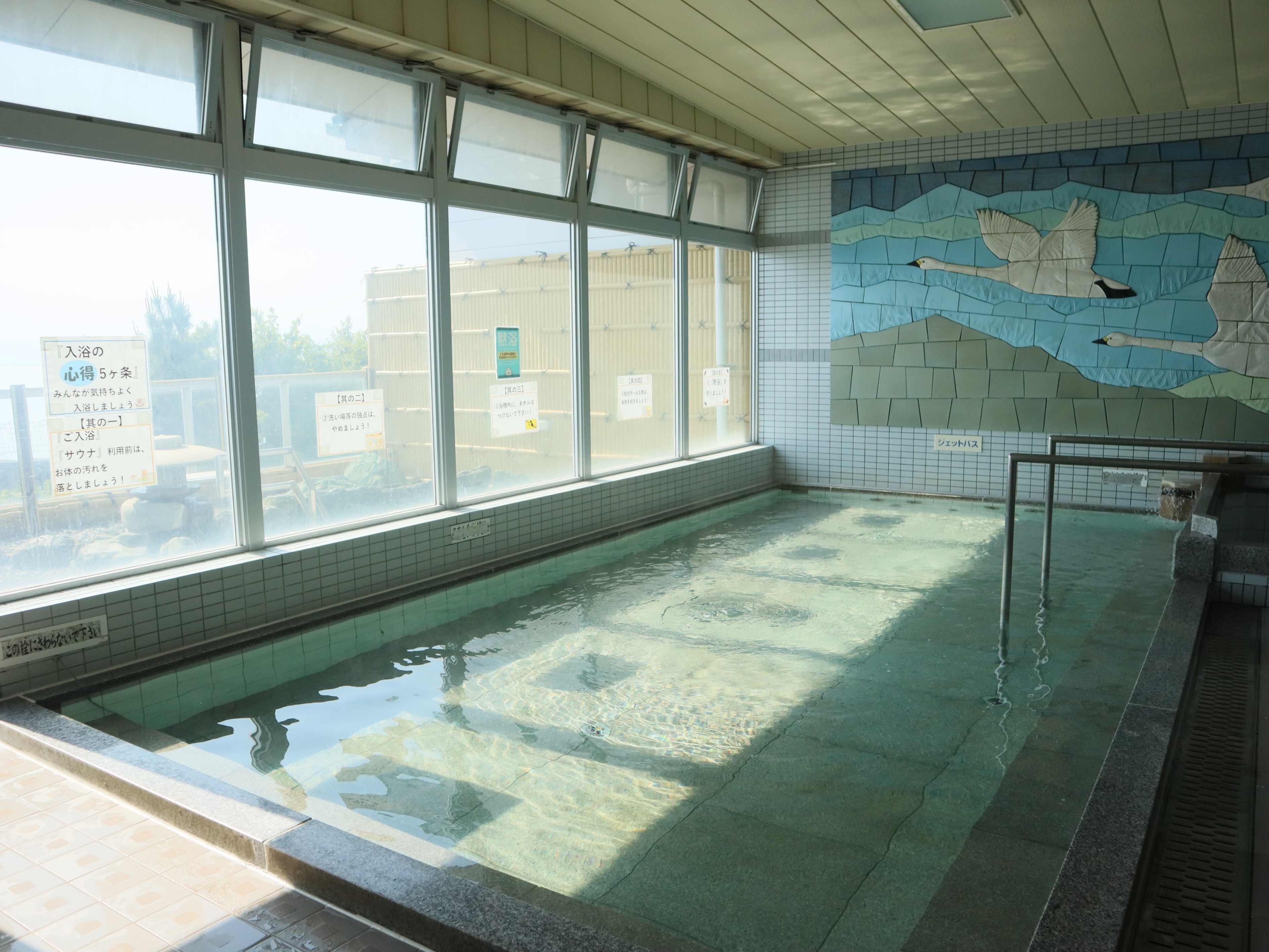 | 料金(入浴料金) | 大風呂(本館) 大人 会員:750円 一般:850円 小学生以下 会員:450円 一般:500円 3歳未満:無料 回数券(11枚綴り) 会員:6600円 貸切家族風呂(新館) 入浴料1室(45分):2000円 会員登録料:500円(※初回のみ更新不要) フェイスタオル販売:200円 バスタオルレンタル:200円 |