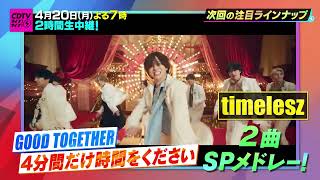 『CDTVライブライブ』 4月20日(月)よる7時から2時間生中継 \👑豪華出演者発表🌟/ INI「All 4 U」 アイナジエンド「ルミナス – Luminous」 Ado「ビバリウム」「アイ・アイ・ア」「踊」 andTEAM「We on Fire」 櫻坂46「The growing up train」 timelesz「GOOD TOGETHER」「4分間だけ時間をください」 DAPUMP「超超超!SUPER HAPPY feat. m.c.A・T」 TWS「OVERDRIVE」 LittleGleeMonster「一輪」