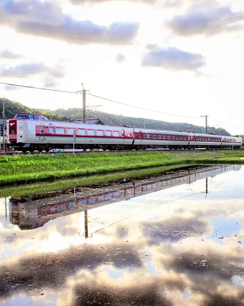 水田に反射する特急やくもの姿!送っていただきありがとうございます。