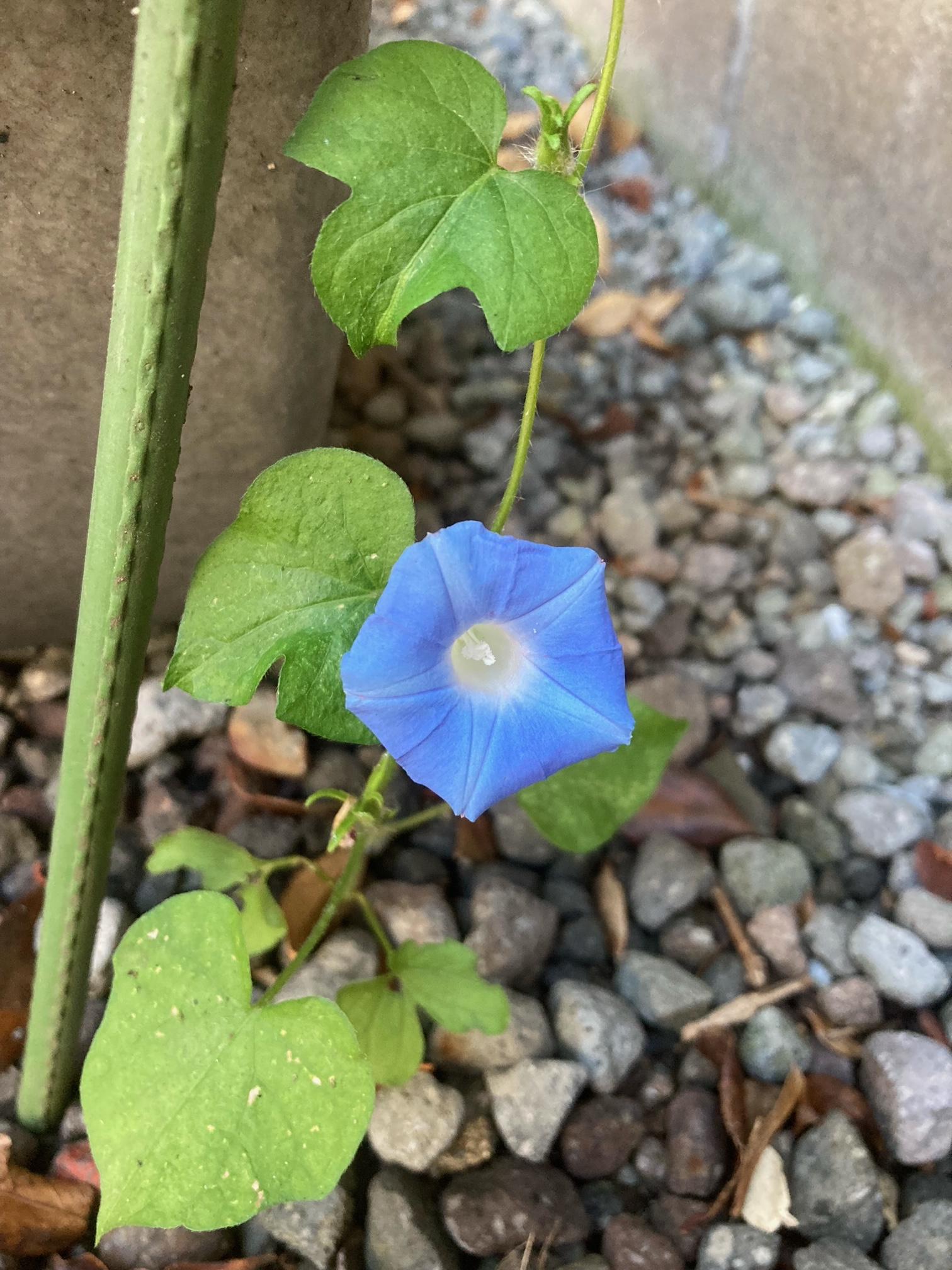 「去年咲いた朝顔の種が落ちてたようで、庭の隅にひっそりと1つ咲いてました」とのこと
